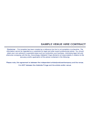 Venue Hire Agreement Template. Event venue contract template is a document which will help you to check and consider all the important issues while planning an event. This Venue Hire Agreement has been written to cover a wide variety of venues suited to an equally wide variety of private events and functions. One of the issues that most entrepreneurs leaving once introduction in matter is the utilization of innovation. even though PC progress may require a huge speculation in imitation of beginning; Overtime, if your frameworks are constructed effectively they will in actuality spare you exceptionally big entireties of cash, specifically in the region of staff compensation.