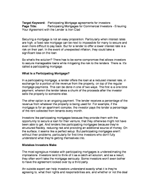 The agreement is made and interpreted to both the loaner and the loaned, upon which a consensus signing takes place. The participation agreement stated that participant's "decision to purchase [its] Participation was based solely upon its independent evaluation of the Loan, the Borrower's creditworthiness and the value and lien status of the Collateral and all matters relating thereto." master non-recourse participation agreement any loan participation purchased and sold pursuant to this agreement constitutes a sale of a percentage ownership interest in the indebtedness, note or notes, collateral and other loan documents and shall in no way be construed as an extension of credit by the buyer to the seller. This participation can be confined to the purpose for which the loan was provided or pertain to the whole business of the company.